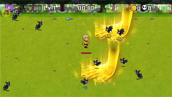 游戏的玩法很简单,就是简单的割草游戏,你将在地下城中利用各种武器击杀想你靠近的怪物。
