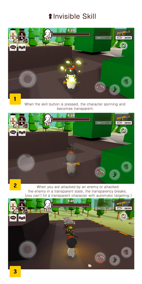 当你在隐身时被攻击或攻击时,你会退出隐身状态。(自动开火不能击中隐身的敌人(存疑))