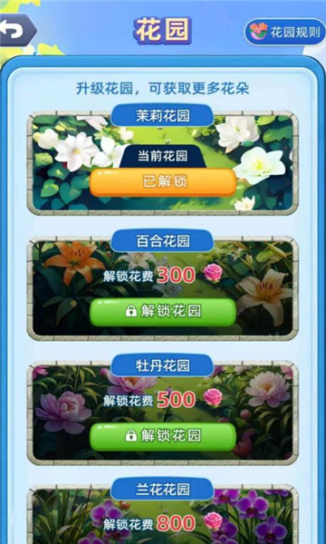 2、还可以通过赚取的花朵来升级自己的花园;