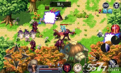2、右下角的快捷键即可释放人物技能,人物技能可以通过右上角的菜单键进行升级;
