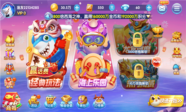 3、海量福利,万元大奖、市场自由交易令捕鱼更畅快、竞争更激烈!