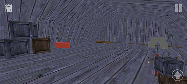 7、开始探索房间,发现楼顶的木板是碎的,可以利用背后的木箱子爬上去。